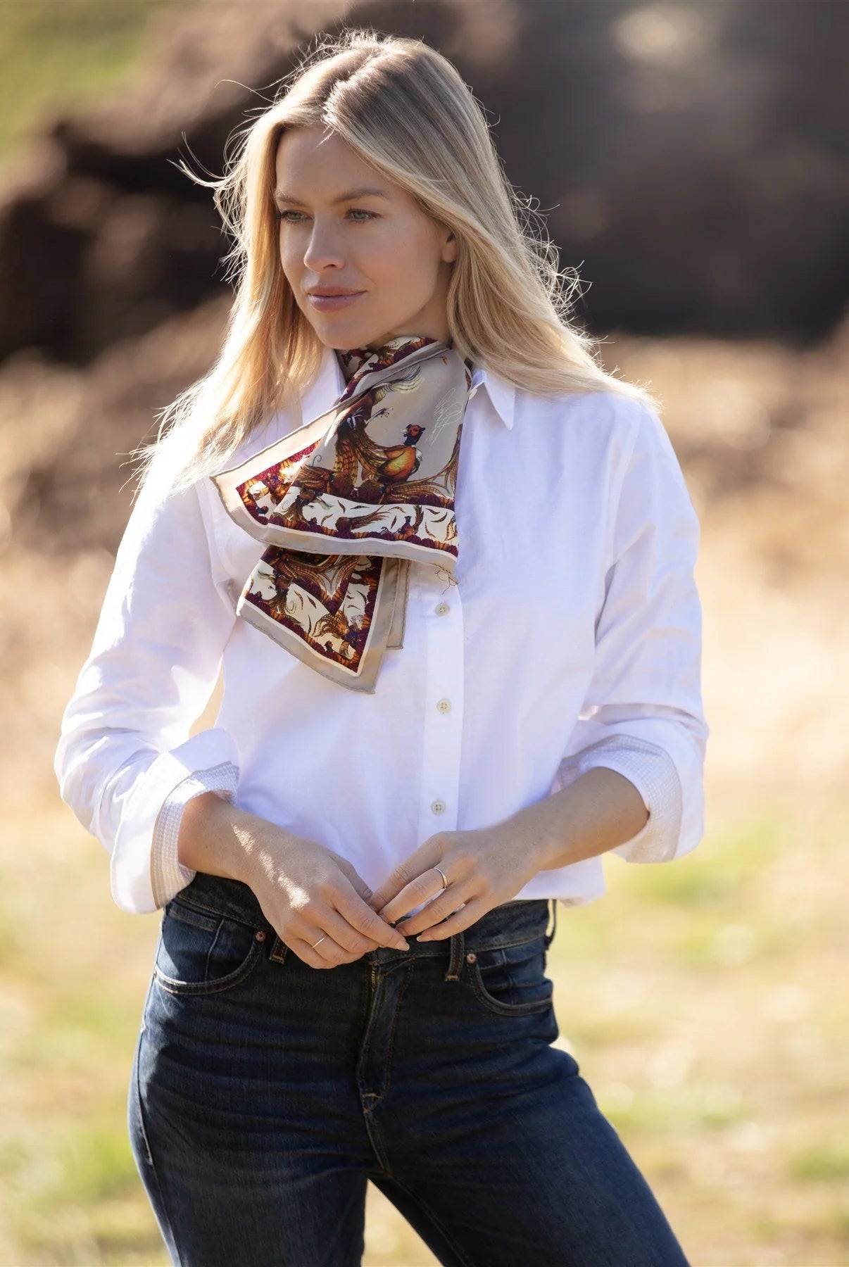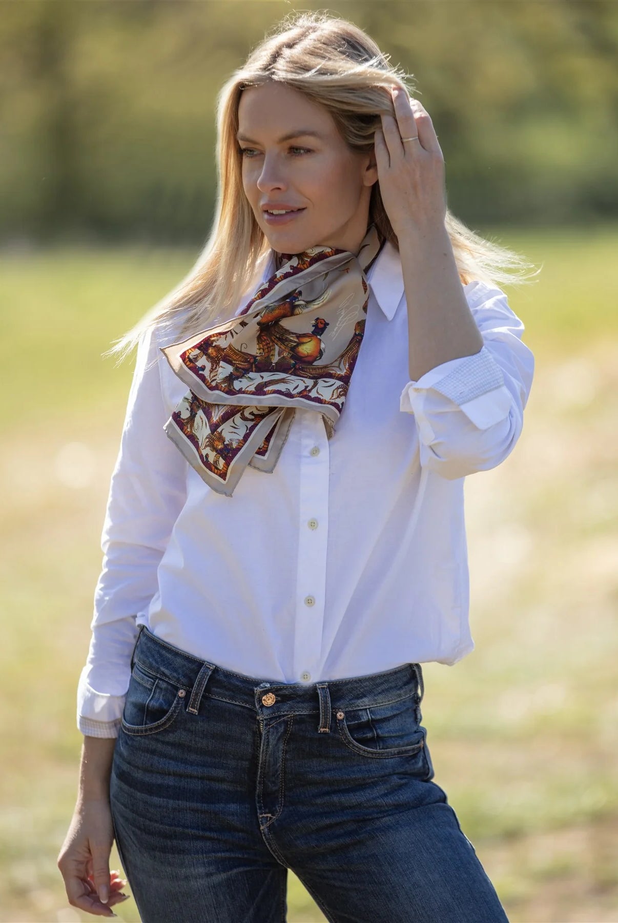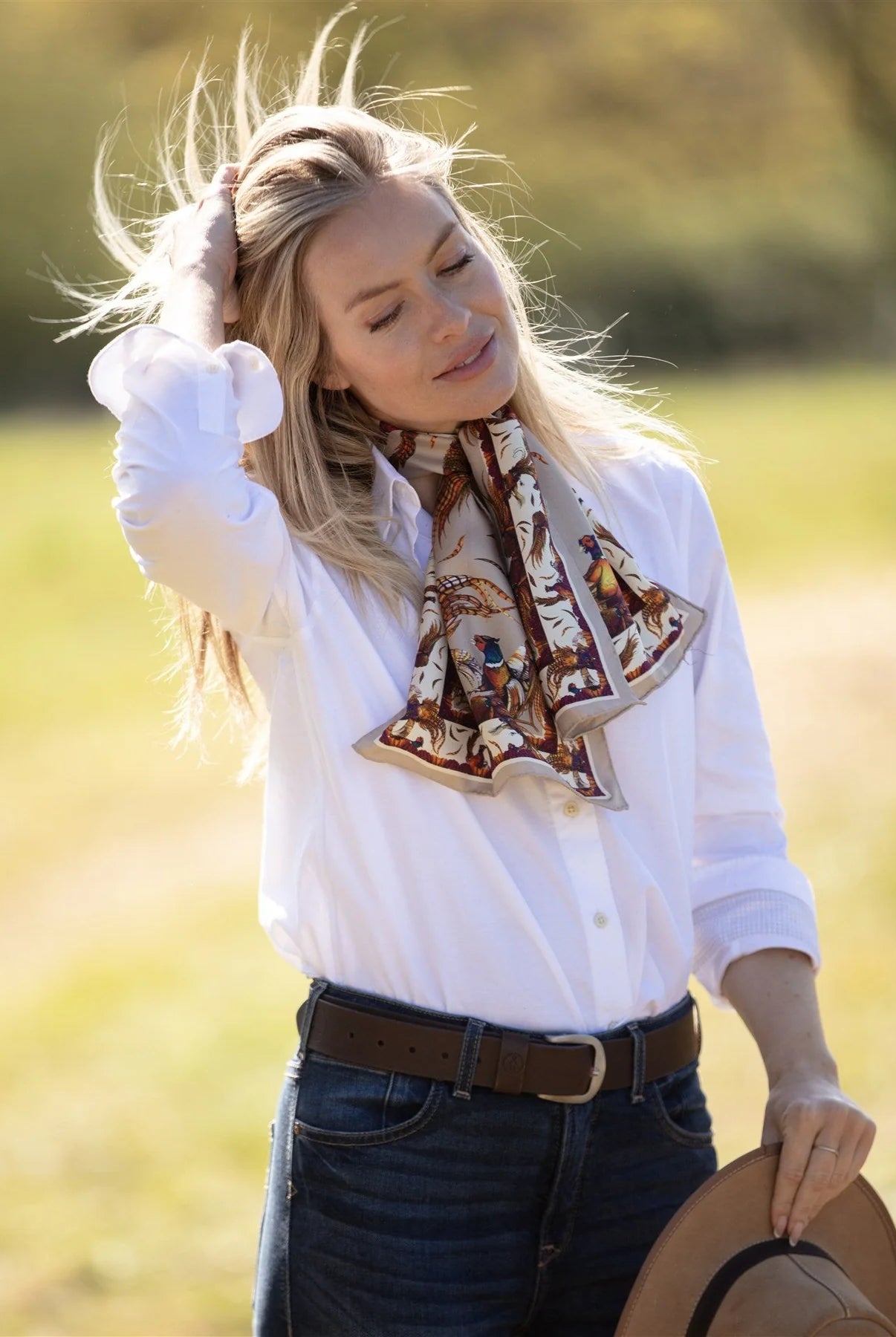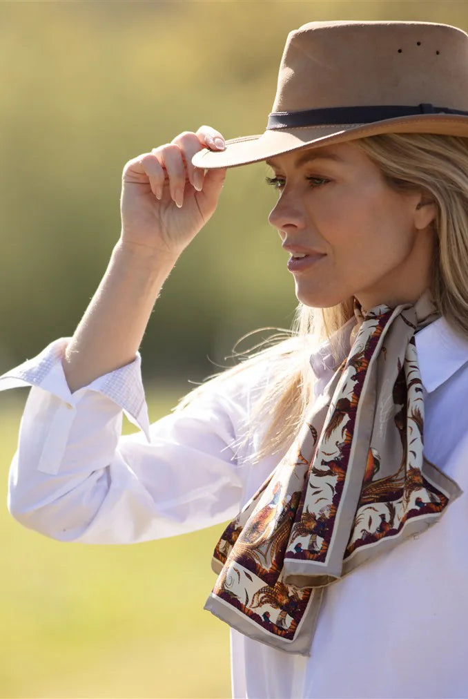 The rustle of wings over the stubble field, a flash of feather and flight — Clare Haggas captures these fleeting countryside moments in silk and colour. This is a collection where field sports and fine art meet, where each piece tells a story drawn from British landscapes and native wildlife.