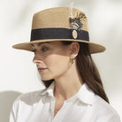 The 6cm brim offers welcome shade, while the hand-finished black ribbon, adorned with Hicks & Brown’s signature branding and a flourish of Guinea and Pheasant feathers, adds a distinguished countryside touch. A versatile companion for summer occasions, this hat strikes the perfect balance between refinement and practicality.