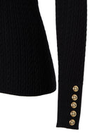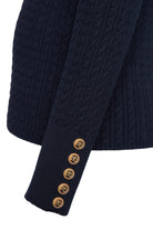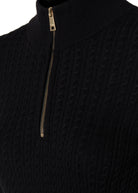 A monogrammed Henley-style zip allows for versatile styling — worn open for a relaxed look or fastened for a more refined finish. Subtle gold hardware at the cuffs adds a touch of sophistication, elevating this everyday knit with considered detail.