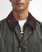 Crafted from 6oz waxed cotton for dependable weather resistance, it features classic Barbour detailing: a corduroy collar, stormfly front with brass ring-pull zip, moleskin-lined handwarmer pockets, and generous bellows pockets. Internal poacher’s pockets and optional zip-in liners add versatility for changing seasons.