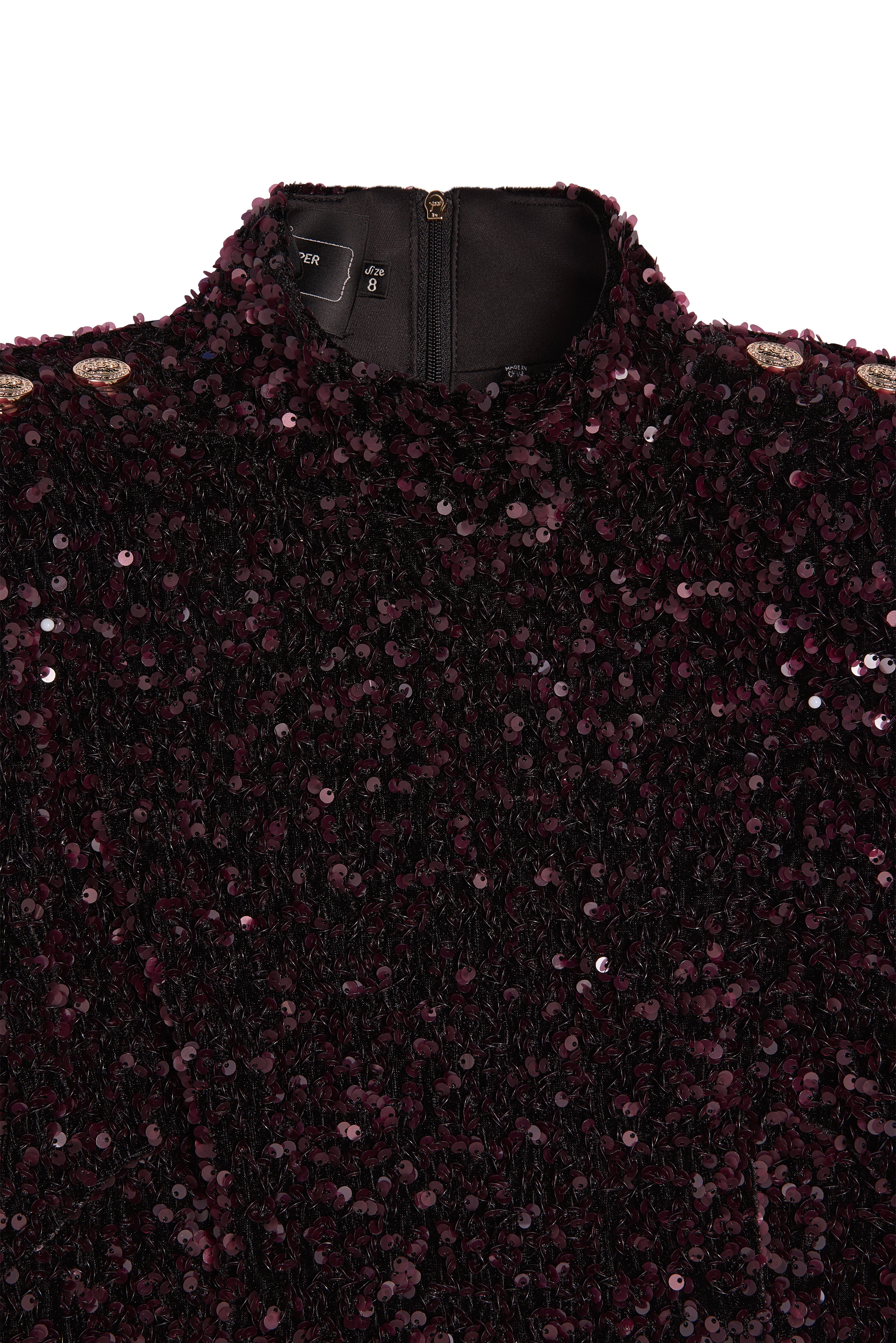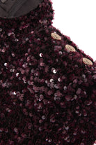 Command attention with the striking Cara Mini Dress, a standout piece designed to elevate any evening wardrobe. Cut with a sleek high neckline and defined by structured shoulder pads, it delivers a bold, empowered silhouette. Long, ultra-slim sleeves provide a refined balance, while the stretch sequin fabric offers a flawless blend of comfort and high-impact glamour. Finished in a luxurious new burgundy hue for the season, this mini dress brings effortless allure to every autumn occasion.