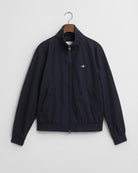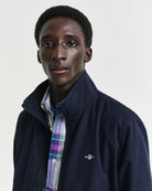 Perfect for those in-between days when the weather can’t quite make up its mind, the Hampshire Jacket combines function and classic style with ease. Crafted from a recycled polyester-cotton blend, its lightweight shell is treated with a Durable Water Repellent (DWR) finish to shed light rain, keeping you dry without weighing you down. The regular fit sits just above the hips, complemented by a stand-up collar lined with soft ribbing for extra comfort. Practical details include a smooth front zip, slanted side welt pockets, and two interior pockets to keep essentials close. Finished with a subtle embroidered GANT logo at the chest and the brand’s signature locker loop at the back, it’s a dependable companion for countryside strolls or town days alike.