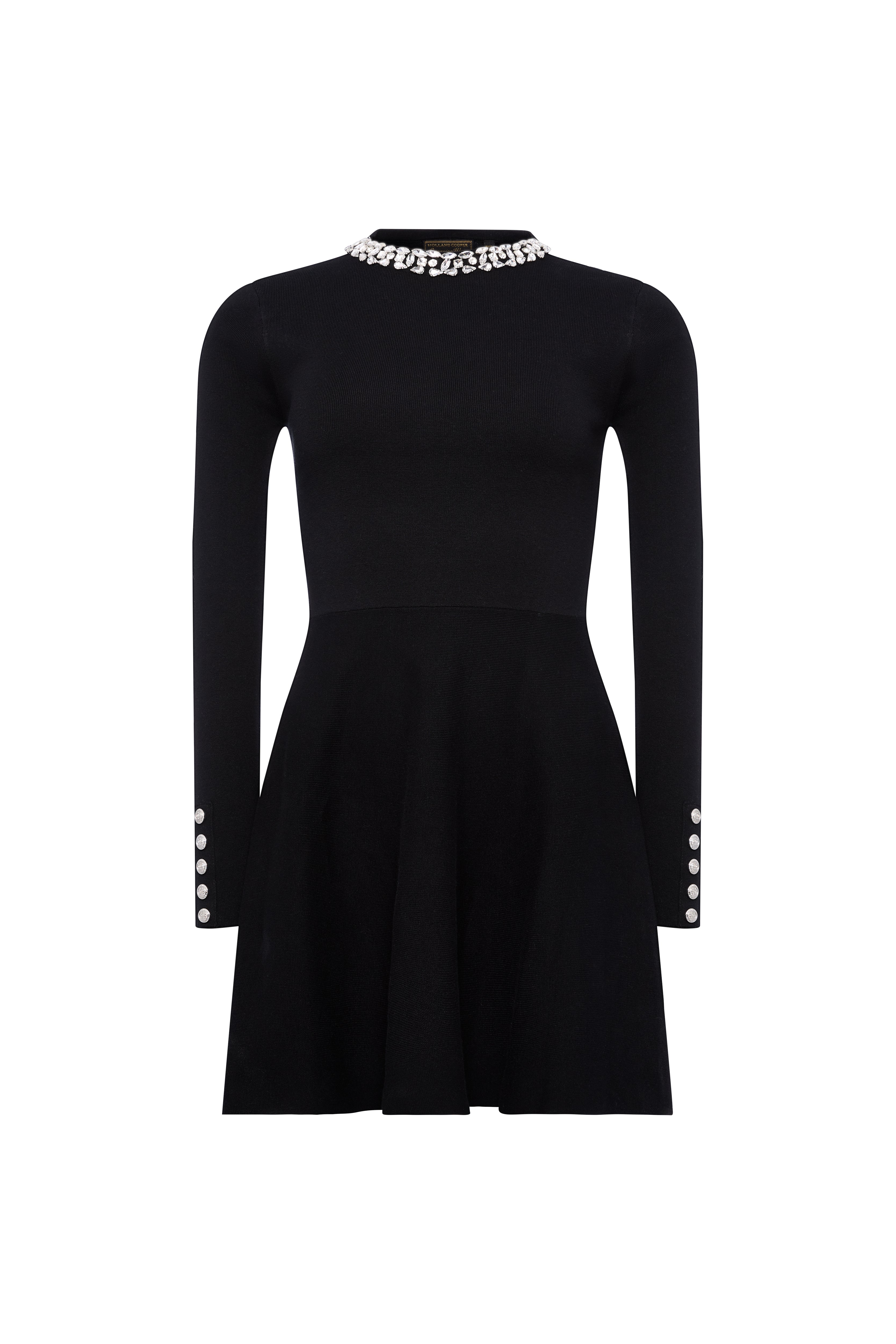 The Isabelle Mini Dress strikes the perfect balance between timeless elegance and subtle sparkle. Crafted from soft cotton yarn in a smooth knit stitch, it offers a beautifully refined feel against the skin. Delicate crystal embellishments frame the crew neckline, adding an understated touch of glamour. Cut in a flattering fit-and-flare silhouette and finished with long sleeves, this mini dress blends comfort with sophistication—ideal for effortless day-to-evening dressing.