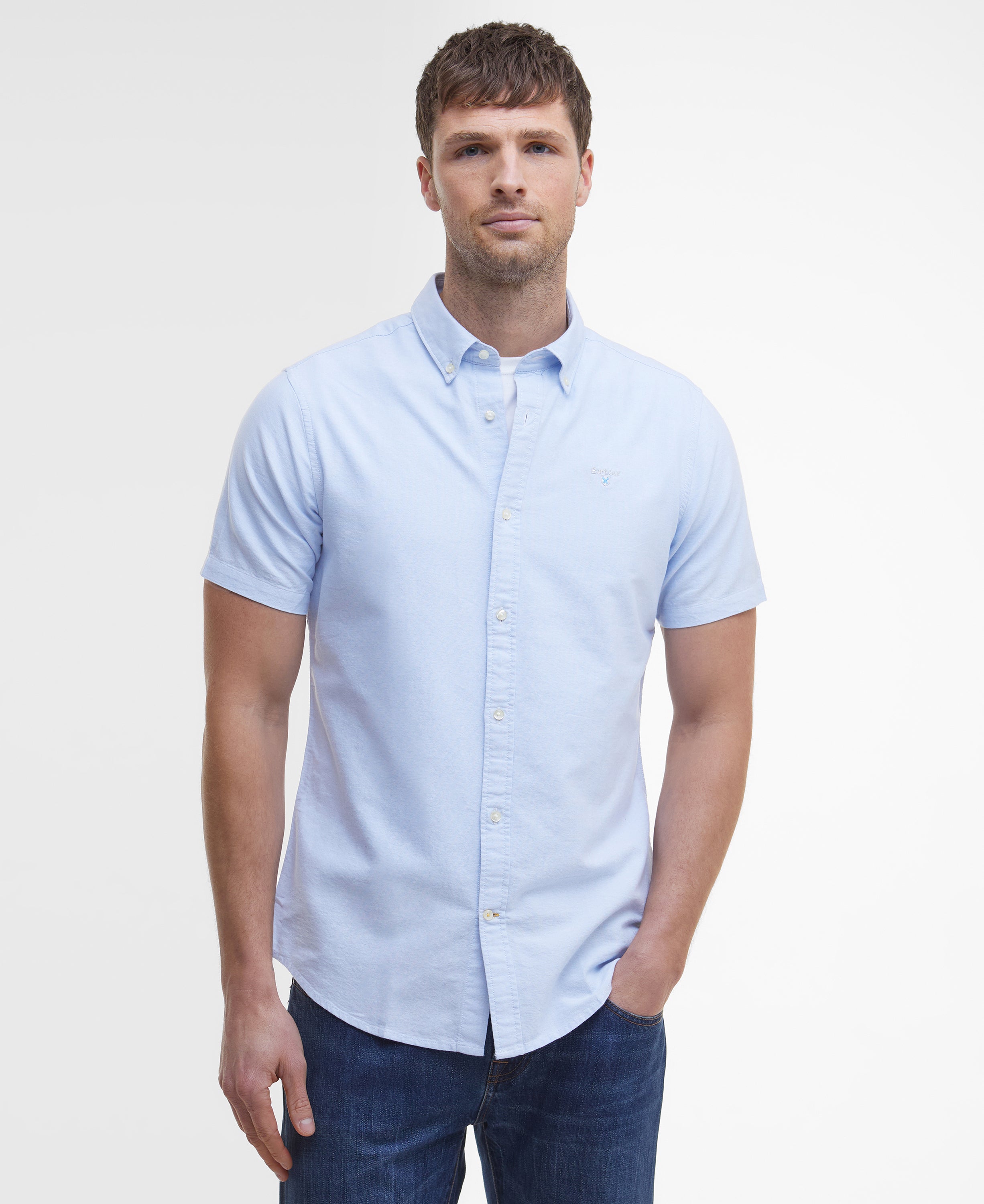 Crafted from premium cotton with a classic Oxford weave, this short sleeve shirt feels breathable and comfortable throughout the day. The tailored fit creates a neat silhouette without restricting movement, while subtle signature branding adds a refined finishing touch. Easy to style with denim, chinos, or lightweight trousers, it pairs naturally with loafers or trainers for effortless smart casual countryside wear.
