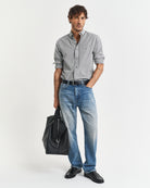 A staple for smart days in town or weekends spent visiting the local, this classic cotton poplin shirt brings timeless ease to any countryside wardrobe. Woven in a durable fabric and cut to a regular fit, it features a traditional Banker Stripe that adds a touch of refinement without feeling formal. The button-down collar, curved hem, and box pleat with a locker loop at the back all speak to thoughtful craftsmanship. Finished with an '80s-inspired shield embroidered on the chest pocket, it’s a quietly distinctive piece that pairs just as well with tailored trousers as it does with well-worn denim.