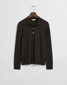 Crafted from a luxuriously soft cotton-modal blend, the GANT Long Sleeve Polo Shirt offers a refined take on a timeless classic. The smooth single jersey fabric provides a comfortable drape and natural breathability, while the flat knit collar is elegantly finished with branded gold-toned buttons. Designed for a regular fit with self-edge detailing at the hem and sleeves, it’s subtly embroidered with the GANT logo at the cuff for a polished touch. Effortlessly versatile, this polo pairs beautifully with chinos, jeans or skirts for an elevated countryside look that’s relaxed yet sophisticated.