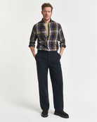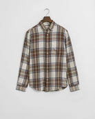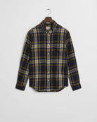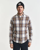 A lightweight take on a seasonal staple, the GANT Windblown Flannel Shirt offers all the comfort of classic flannel in a breezier, easy-to-layer design. Crafted in soft cotton with an all-over yarn-dyed check, it features a regular fit, button-down collar, adjustable cuffs and curved hem for everyday ease. Imitation horn buttons add a refined touch, while the chest pocket is finished with signature GANT embroidery. Ideal for layering over tees or under knitwear, this versatile shirt brings effortless countryside charm to autumn-winter dressing.