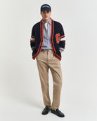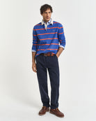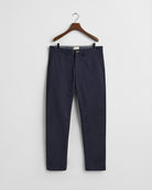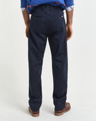Step into everyday countryside ease with the GANT Twill Chinos, a modern take on a much-loved icon. Cut in a regular fit with a mid-rise waist, they offer a clean, versatile silhouette that works from relaxed weekends to smarter outings. The organic cotton twill contains a hint of stretch for comfortable movement, while details such as the buttoned front, double-jetted back pockets and chambray-lined waistband add refined finishing touches. Pair them with a crisp button-down and blazer or keep things simple with a tee and trainers for timeless, effortless style.