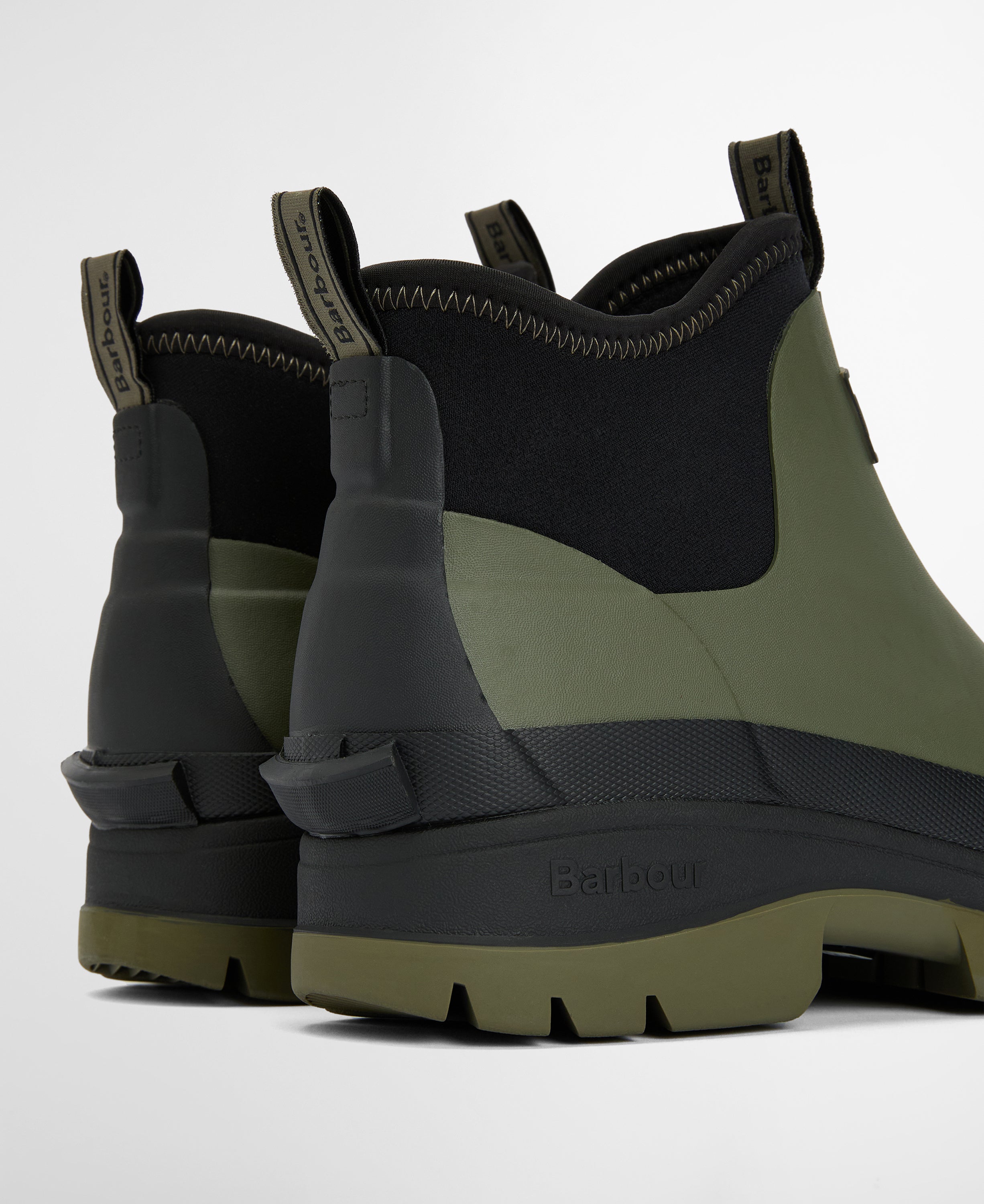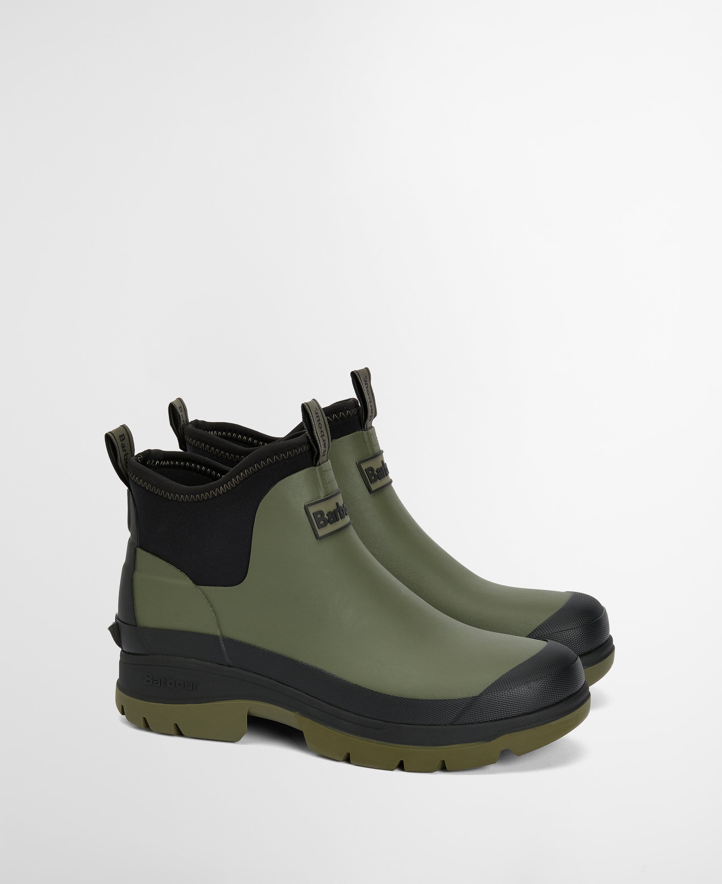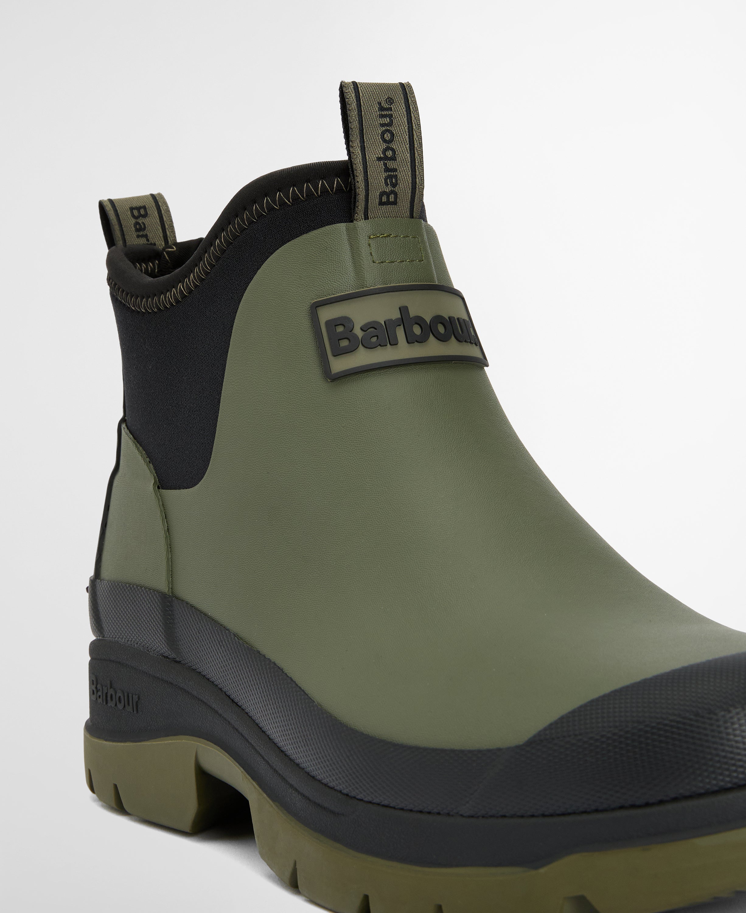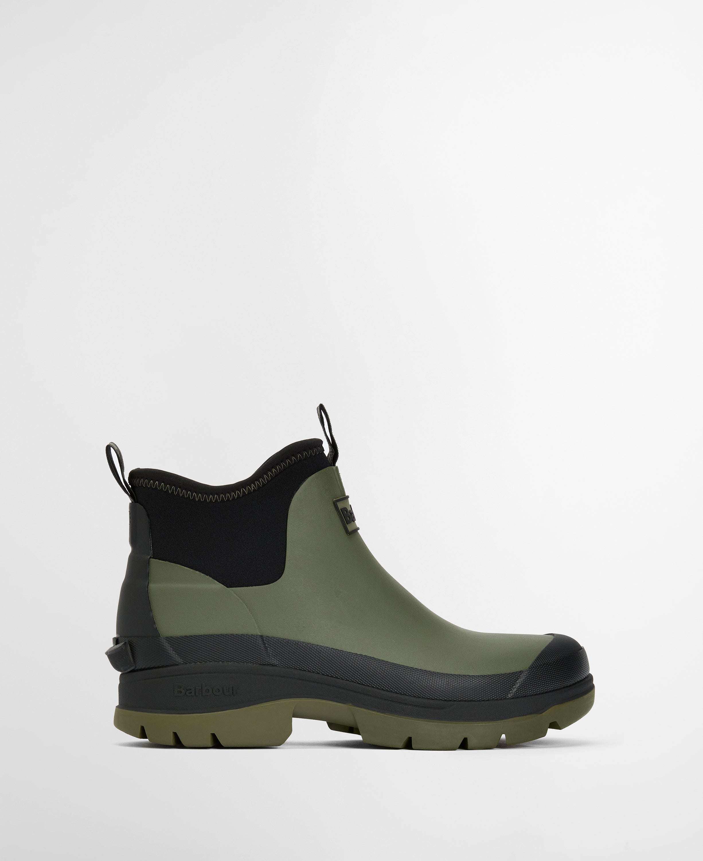 Set on a chunky ridged sole, they provide reliable grip on slippery ground, while the elasticated ankle panels ensure a secure, comfortable fit that is easy to pull on and off. The shorter ankle height makes them ideal for everyday outdoor use without sacrificing coverage or durability. Finished with understated Barbour styling, they pair effortlessly with jeans, knitwear and waterproof layers for practical countryside living in all weathers.