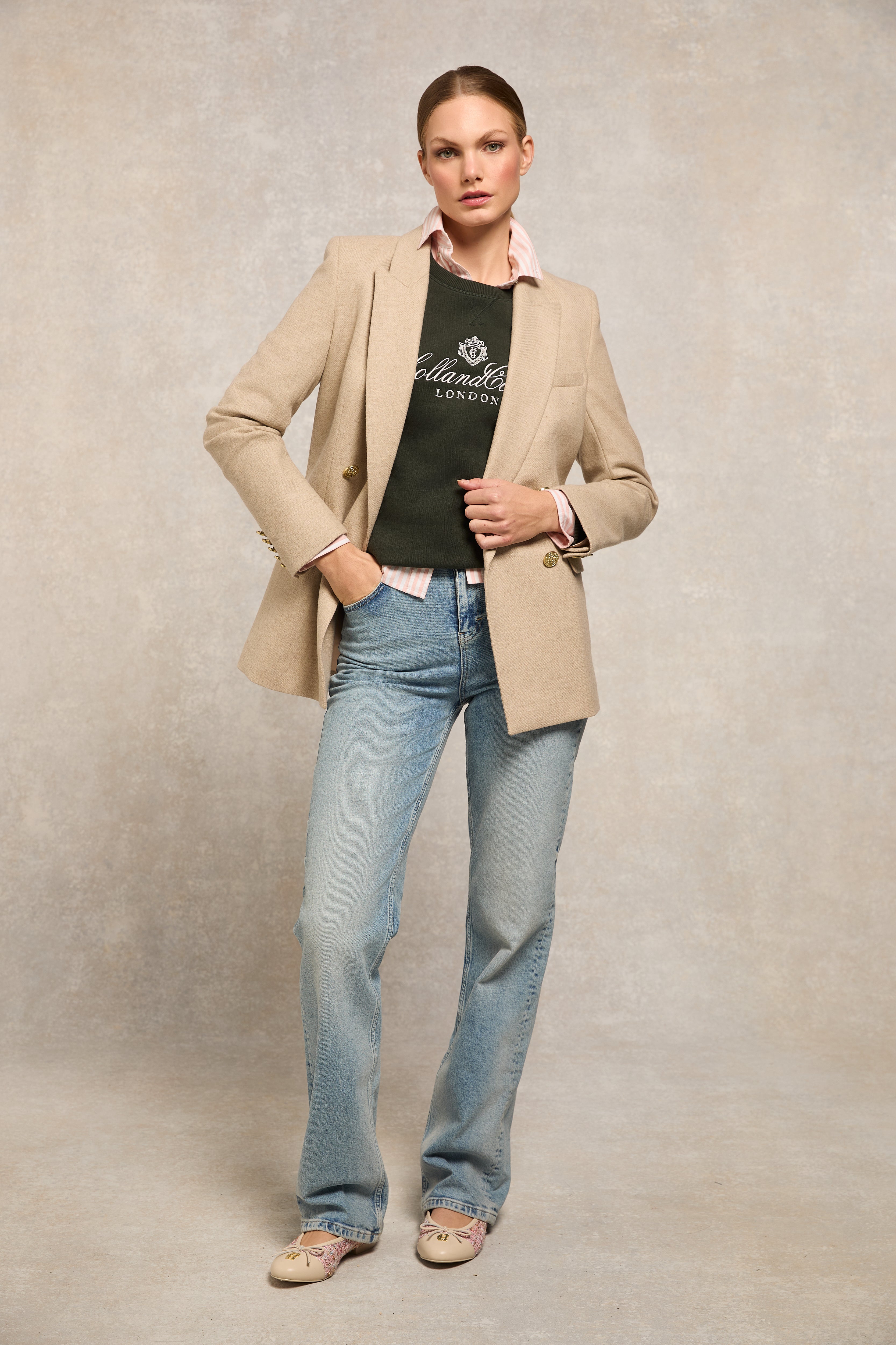 A brisk morning in the garden or a relaxed afternoon in the village — this refined layer brings a sense of ease to everyday dressing. Crafted from a premium blend for softness and durability, the raglan sleeve design allows for natural movement and a comfortable fit throughout the day.