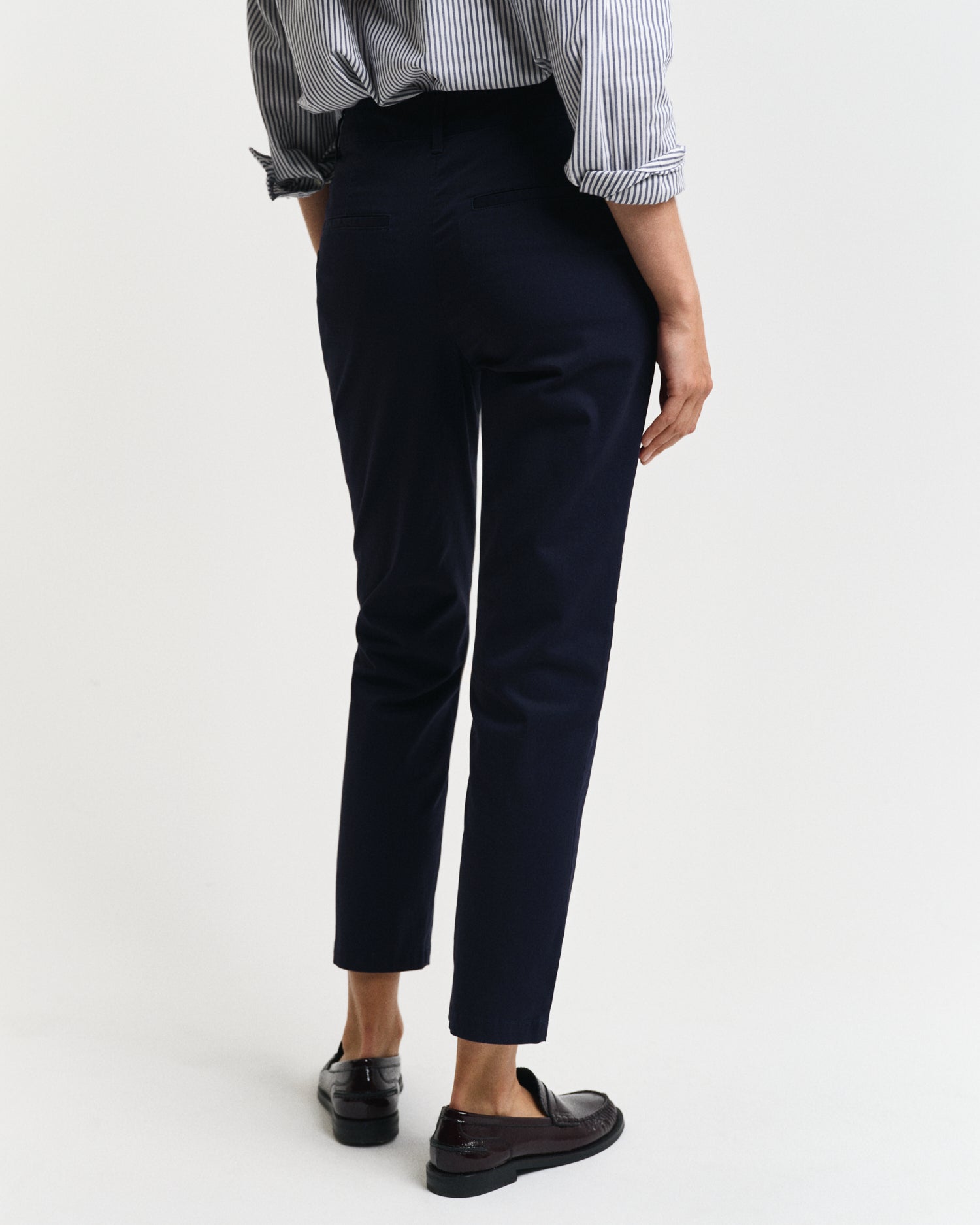 Effortless and polished, these slim cropped chinos bring a modern edge to a classic countryside staple. Crafted from an organic cotton blend with just the right amount of stretch, they offer a comfortable, flattering fit that sits at the mid-rise and finishes just above the ankle. Garment-washed for a soft, lived-in feel, they’re detailed with slanted front pockets, tonal embroidery at the back welt pocket, and branded imitation horn buttons that lend a subtle touch of refinement. Smart enough for town, relaxed enough for the garden — a versatile piece for everyday ease.