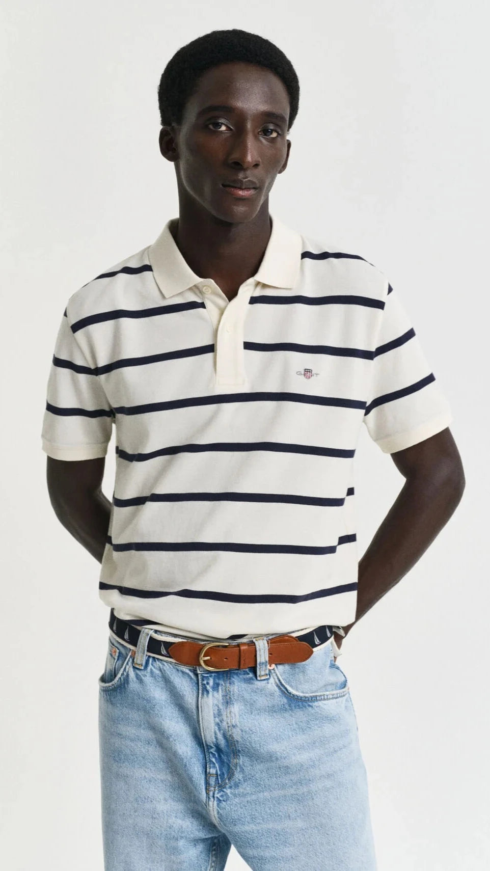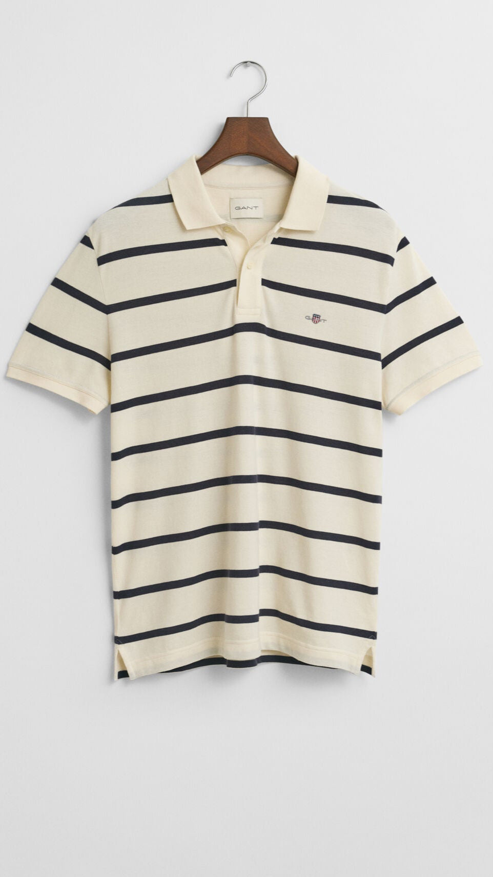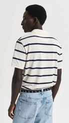 With its clean lines and easy charm, this striped polo shirt brings a touch of sporting tradition to relaxed countryside dressing. Crafted from 100% organic cotton and patterned with yarn-dyed stripes for lasting colour, it’s cut in a regular fit for everyday comfort. Classic details include a flat knit collar, branded button placket, and side hem slits for ease of movement. Finished with the iconic GANT shield embroidered at the chest, it’s a timeless staple that transitions effortlessly from garden lunches to weekend rambles.