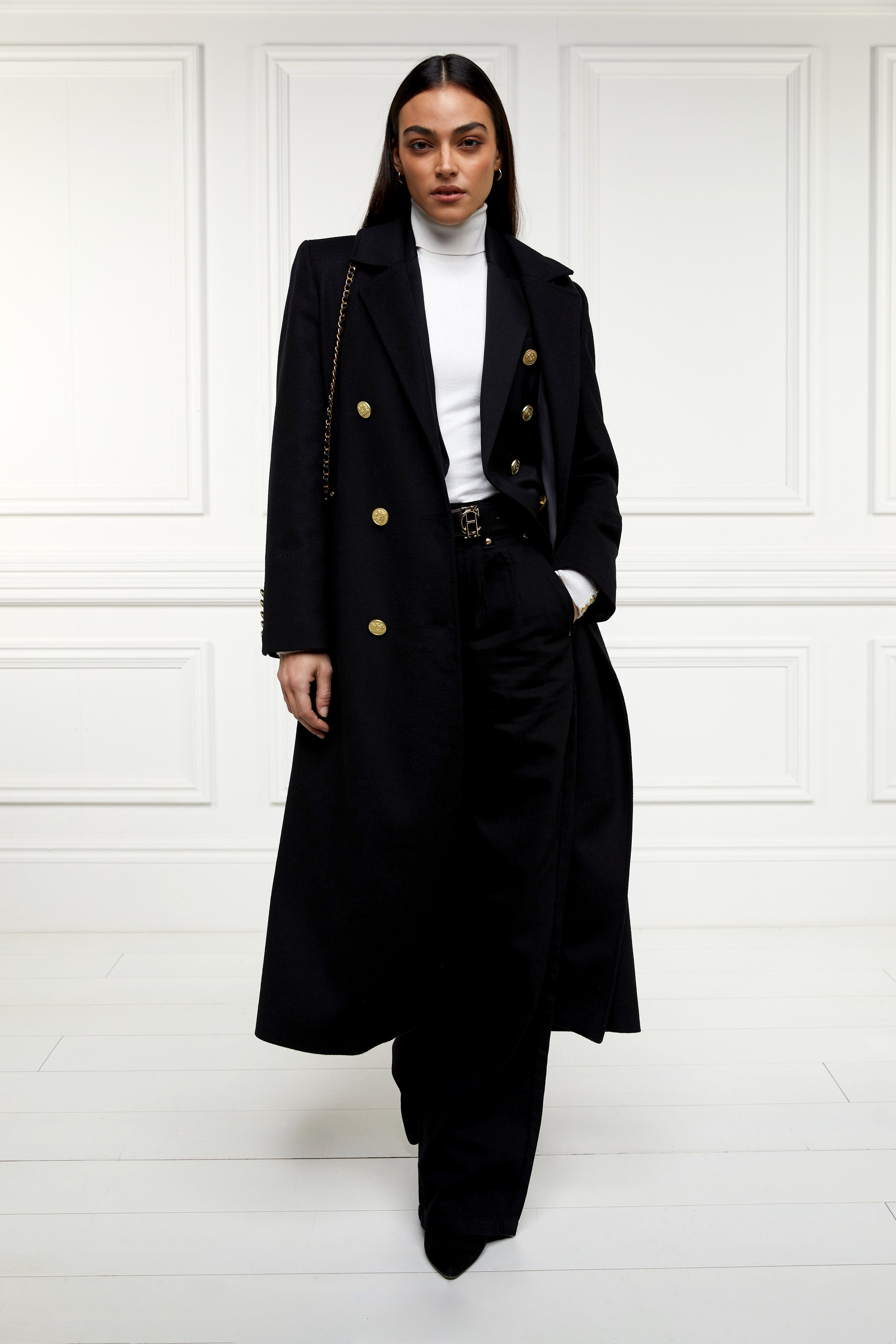 Pleated fronts lend an elegant drape through the leg, while traditional jean pockets and signature gold hardware provide a timeless finish. Designed to move effortlessly between smart and casual settings, they pair just as well with a cosy knit as they do with a sharp blazer — a versatile staple for every well-dressed countryside wardrobe.