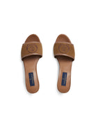 A signature embroidered logo adds a distinctive finishing touch, while the rich suede and subtle leather trim bring timeless sophistication to relaxed summer dressing.
