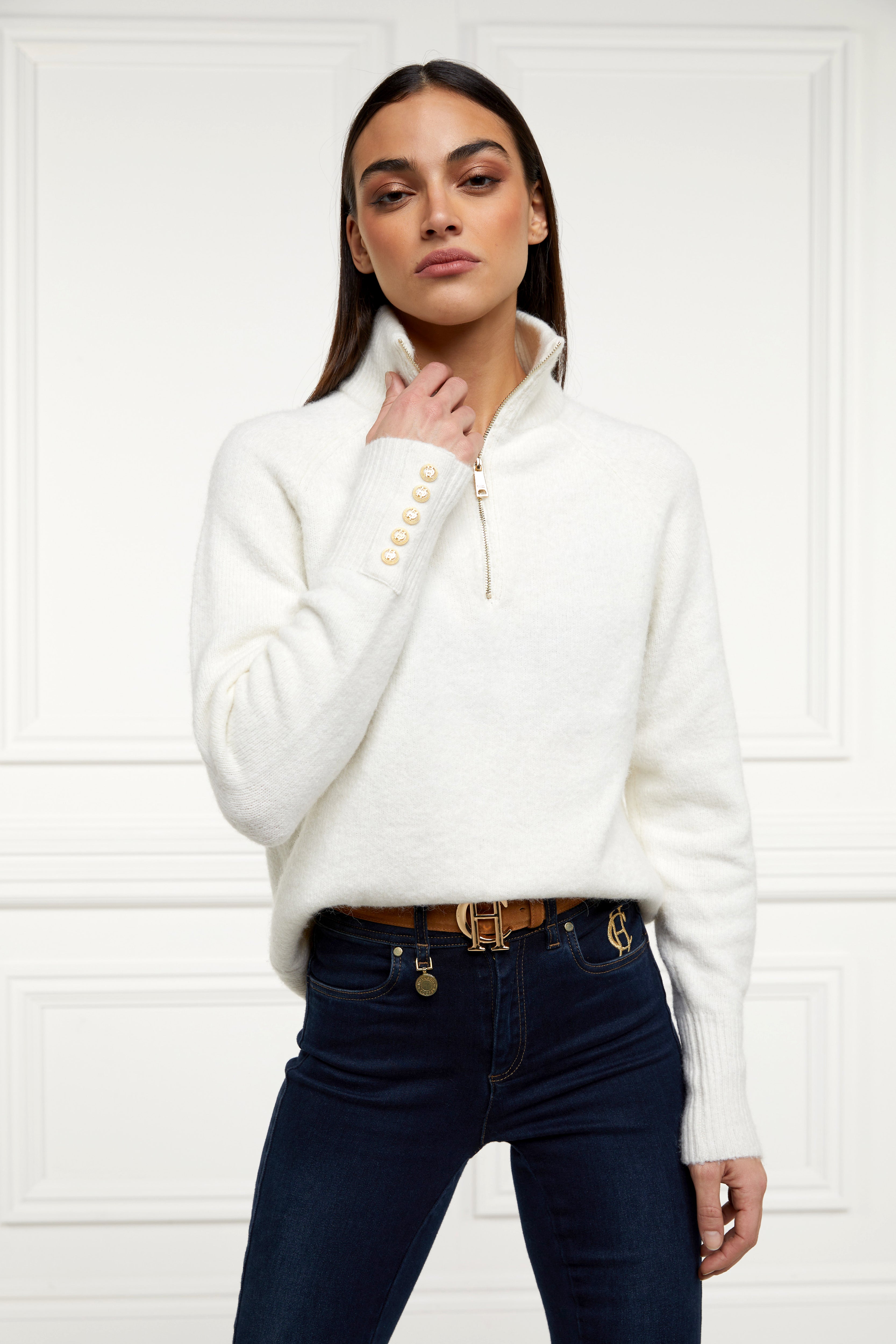Inspired by heritage trails and farmstead mornings, the tori half zip knit by Holland Cooper combines practicality with heritage styling. Crafted for comfort and built to last, this piece blends modern performance with a classic countryside aesthetic. Ideal for outdoor pursuits or everyday wear, it delivers both durability and understated elegance. What sets it apart is its balance of refined design and rural resilience — a dependable companion from season to season.