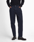 Five-pocket styling nods to traditional denim, bringing casual character, while the inner waistband features a subtle Barbour tartan trim — a quiet mark of heritage. Whether paired with a checked shirt or dressed up with a knit and boots, these trousers blend timeless appeal with everyday practicality.