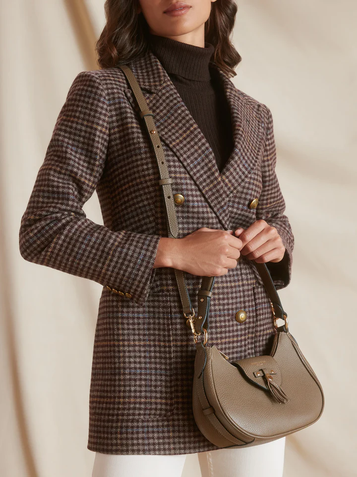 Inspired by timeless countryside elegance, the Fairfax & Favor Windsor Shoulder Bag brings refined British style to everyday adventures. Handcrafted in luxurious pebbled leather, this small but beautifully shaped crescent bag features signature gold hardware, a delicate mini tassel, and distinctive Sam Browne fastenings. Inside, a spacious main compartment and internal zipped pocket keep essentials secure, while a detachable cross-body strap adds versatility. Perfectly balancing sophistication and practicality, the Windsor Shoulder Bag transitions effortlessly from town to country, pairing just as well with tailored looks as with relaxed weekend wear.